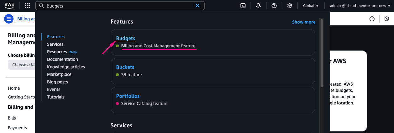 adminuser ) - Truy cập đường link: https://us-east-1.console.aws.amazon.com/billing/home#/budgets