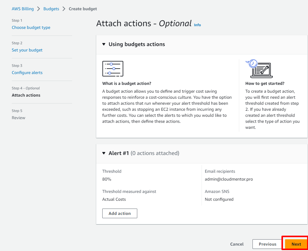 - Step 4: Attach actions - Optional (Không cần làm gì ở Step này)