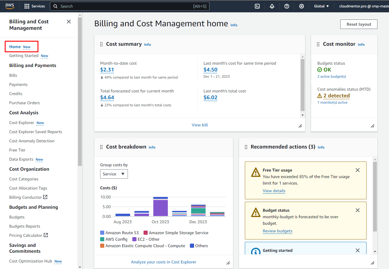 Review your spend and Free Tier usage