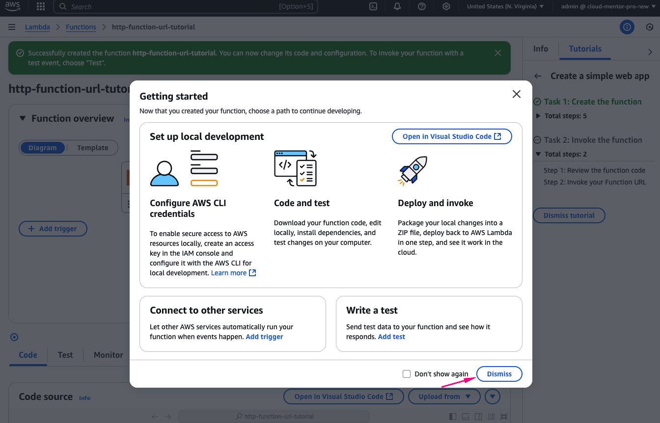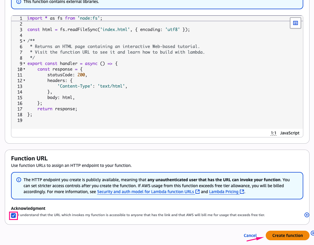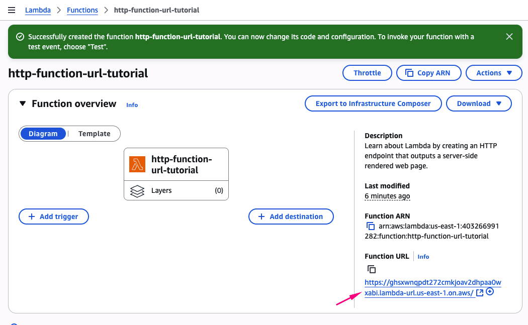 Sau khi lambda function tạo xong thì bạn click vào link như hình bên dưới: