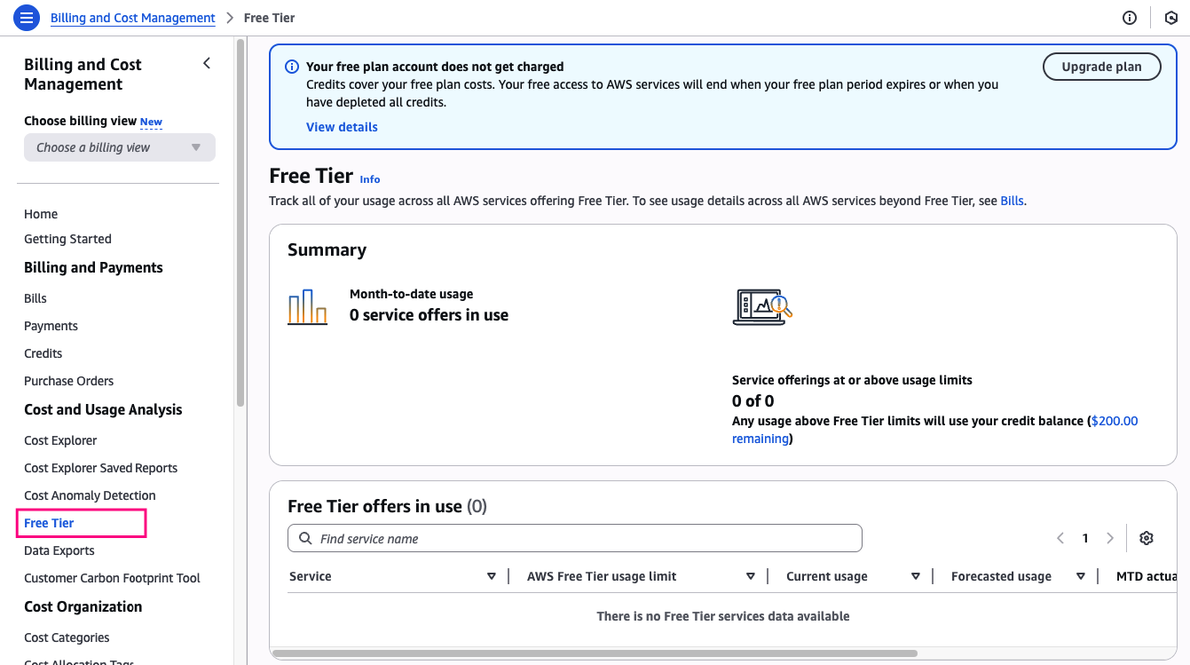 Access all your Free Tier usage