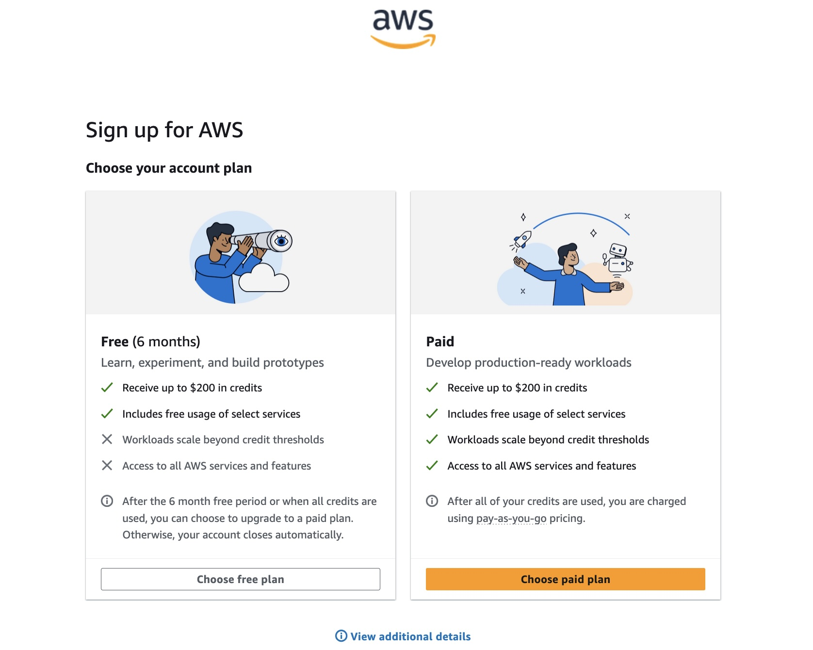 Khi đăng ký tài khoản AWS mới, giờ đây bạn có thể lựa chọn giữa hai loại Account Plan là Free Plan (Gói Miễn phí) và Paid Plan (Gói Trả phí)