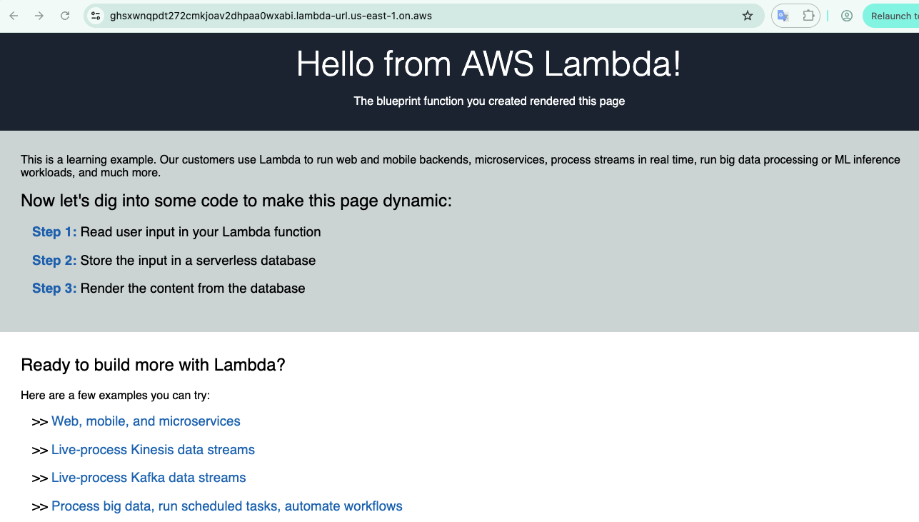 Nhiệm vụ này sẽ hướng dẫn bạn tạo một web app đơn giản bằng Lambda mà không cần viết code.
