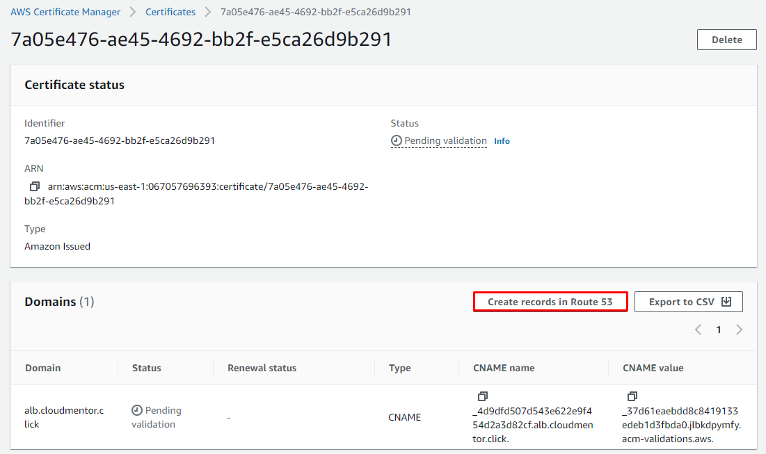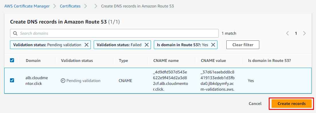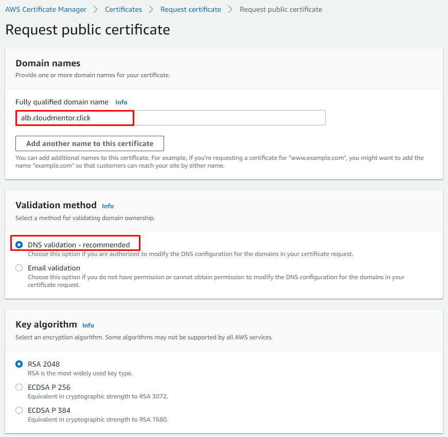 alb.{your-domain}(trường hợp của mình làalb.cloudmentor.click) - Validation method: