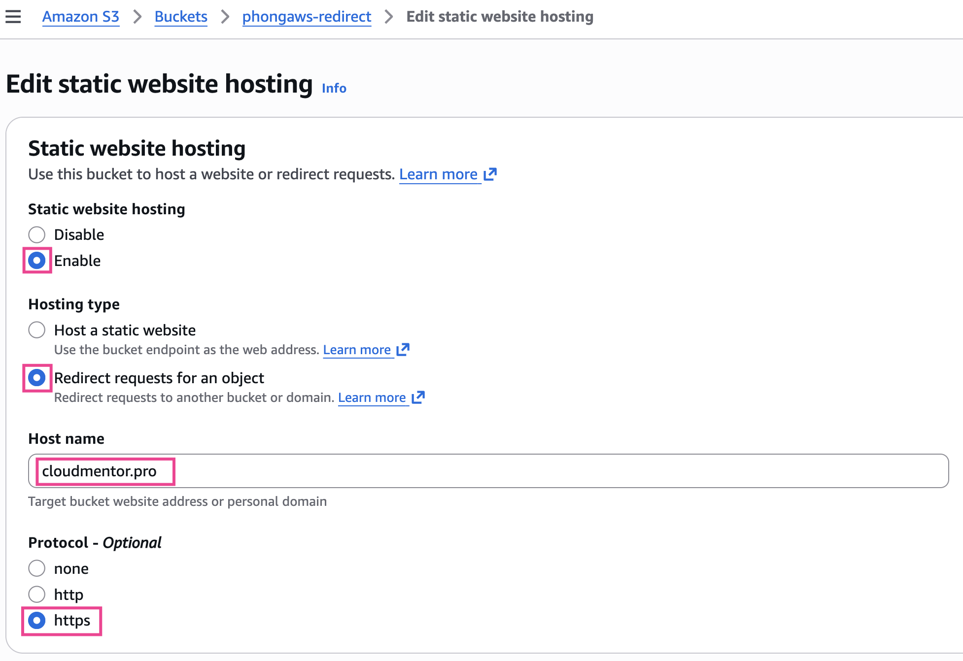 cloudmentor.pro) - Chọn Protocol là https