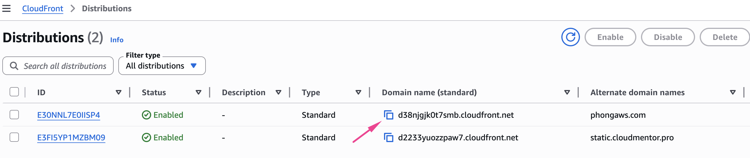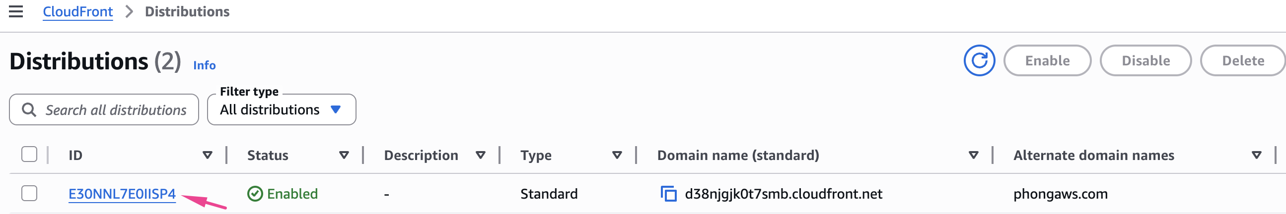 - Chọn Distribution ID của bạn
