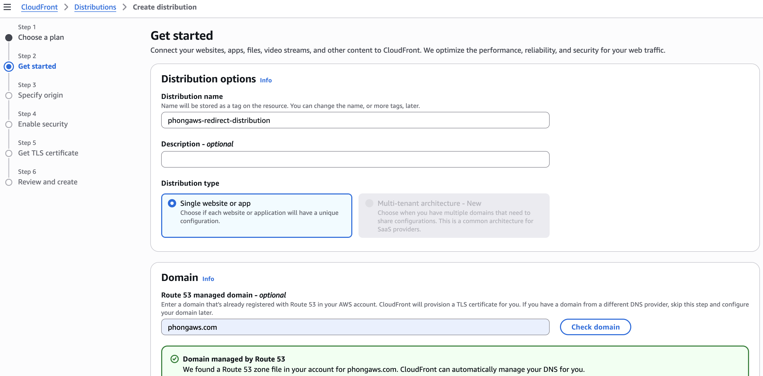 phongaws-redirect-distribution) - Chọn Single website or app
