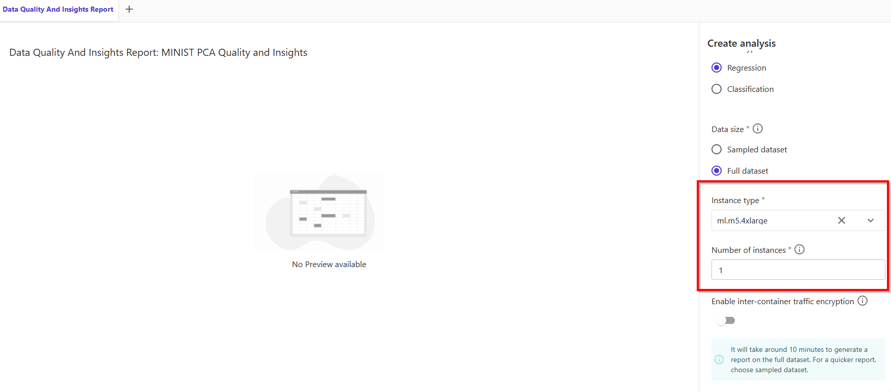 - The time taken for the report to generate depends on the size of the dataset, number of features, and the instance size used by Data Wrangler. Fortunately, we don’t have any missing values.