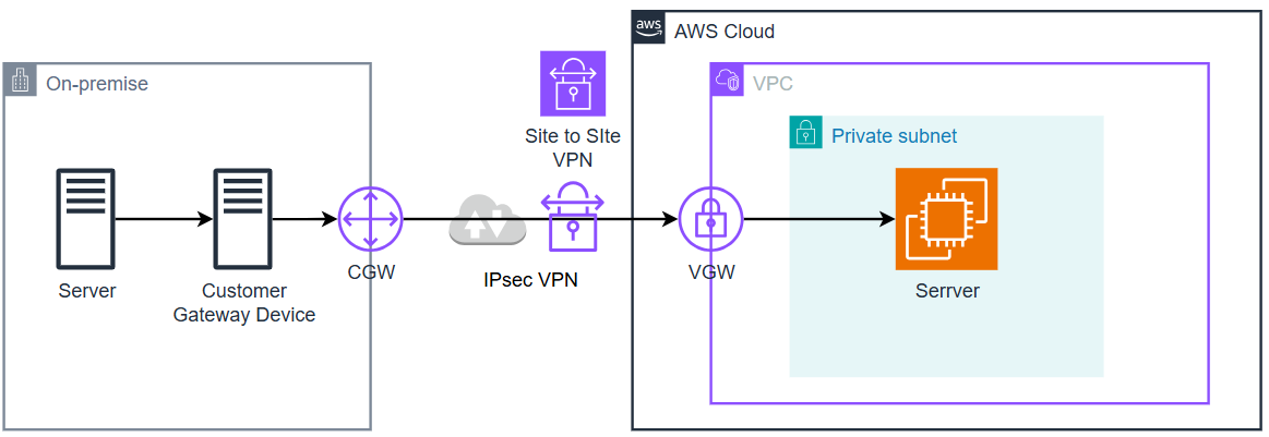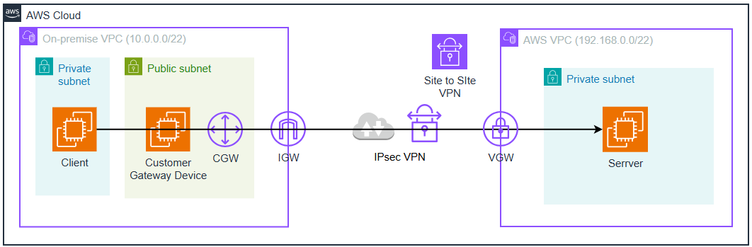 - Môi trường on-premise và AWS sẽ được kết nối thông qua AWS Site-to-Site VPN
