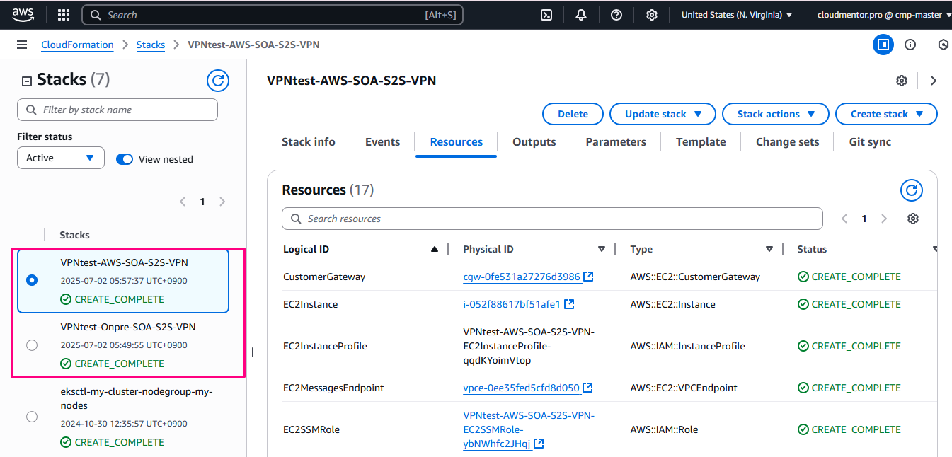Ngay cả khi không có thiết bị VPN thật, việc kiểm chứng kết nối VPN vẫn có thể thực hiện hoàn toàn trong môi trường AWS. Ngoài ra, bằng cách tận dụng CloudFormation, Chúng ta có thể dễ dàng tạo và dễ quản lý môi trường.