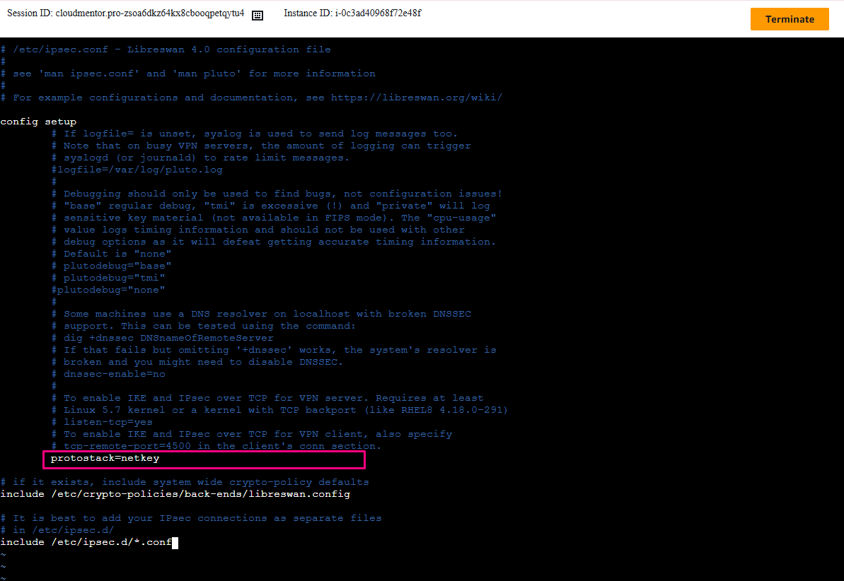/etc/ipsec.conf, Chỉ thêm protostack=netkey ở cuốivi /etc/ipsec.conf -