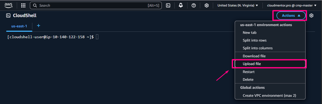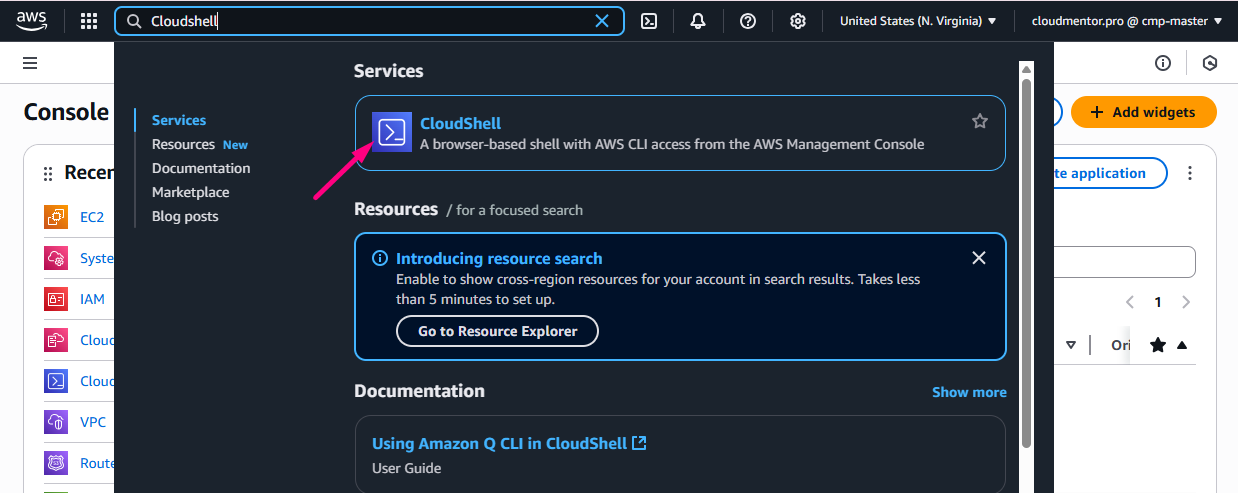 Sử dụng CloudShell và AWS CLI để chạy command cho thuận tiện