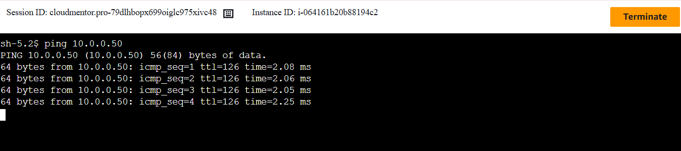 ping {SOA-S2S-VPN-AWS-Private-EC2 IP}