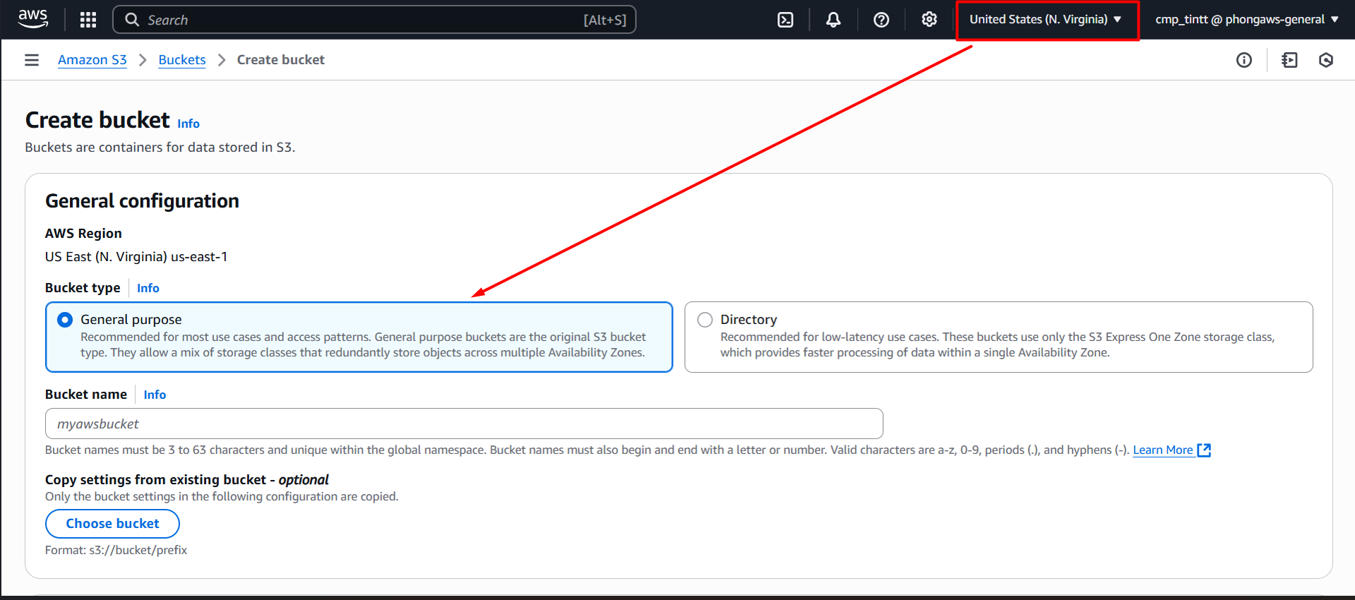 US East (N. Virginia) us-east-1 - Bucket name: