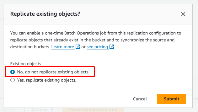 - Existing Objects: CRR sẽ không replication những Object đã có săn trong source bucket trước khi thiết lập CRR. Chỉ những Object mới được create hoặc update sau khi seting CRR mới được replicate