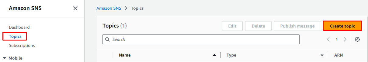 Sau khi tạo xong thì chúng ta sẽ copy giá trị ARN của SNS để lát nữa Setting policy sẽ dùng giá trị này.