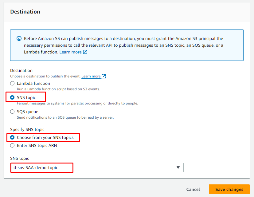 Creating and Subscribing to SNS Topics, Adding SNS event for S3 bucket