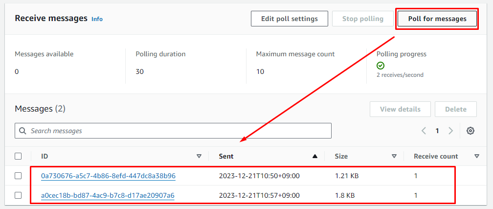 Tương tự như email, thì mỗi SQS queue cũng nhận dc 2 message.