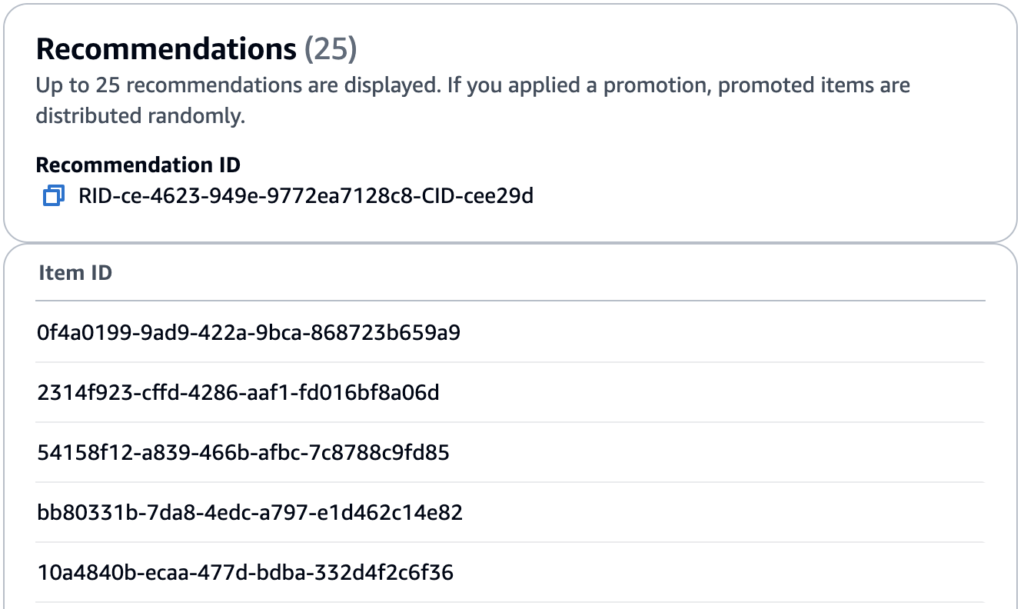 Có 1 điểm rất hay khi sử dụng EventTracker với thuật toán USER_PERSONALIZATION, Amazon Personalize sẽ auto re-training sau mỗi 2h nếu một item (sp) không được thêm vào dataset group được liên kết với Event Tracker. Các item vừa được thêm vào sau khi re-training kết thúc sẽ được phản ánh trong kết quả đề xuất.