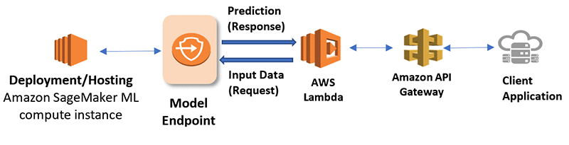 - Client -> API Gateway -> sử dụng lambda để invoke SageMaker Endpoint API
