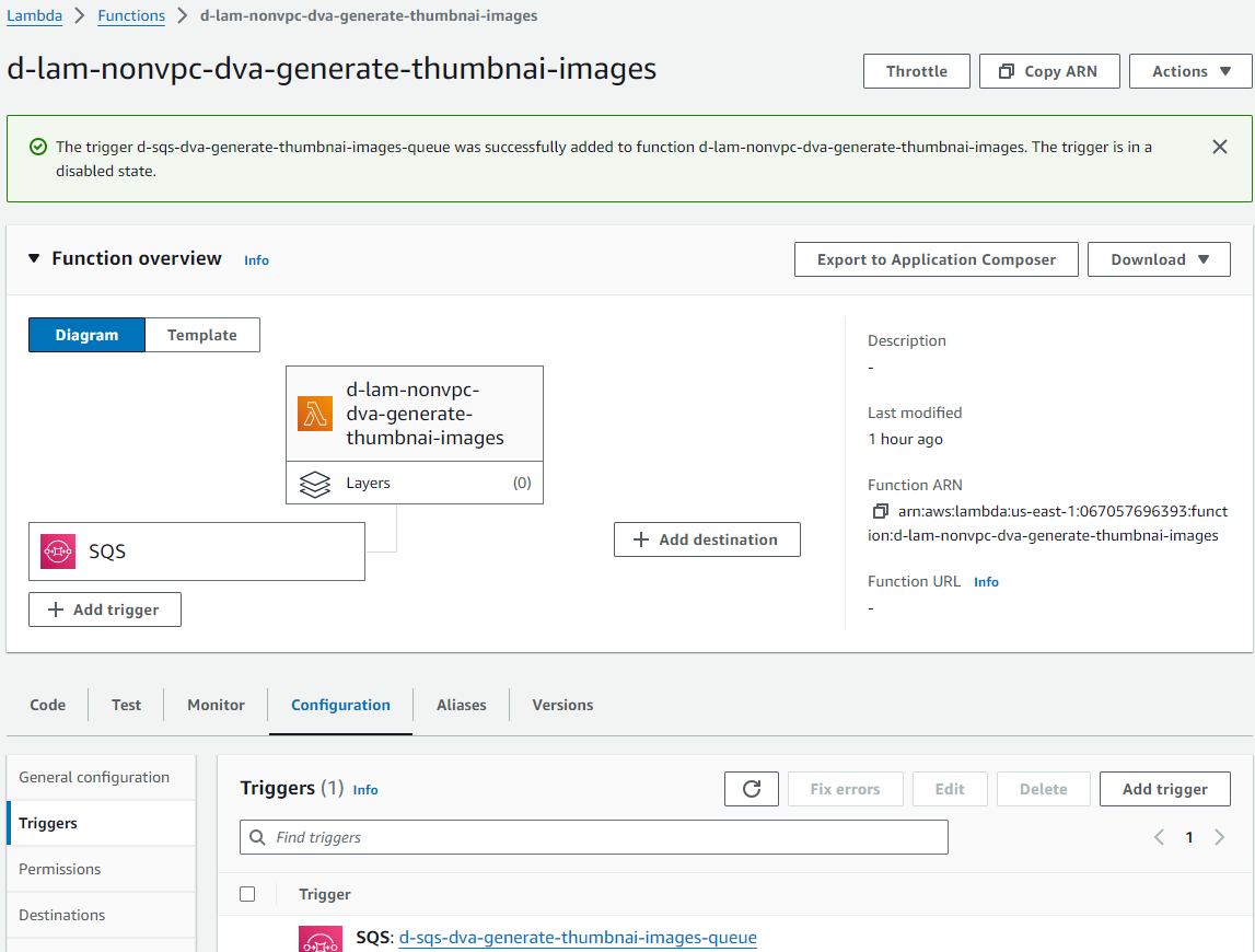 Lambda d-lam-nonvpc-dva-generate-thumbnai-images được trigger từ SQS queue